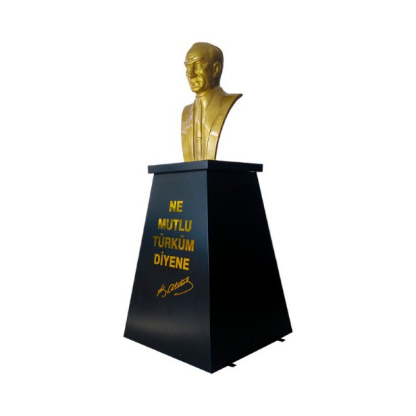 Atatürk Büstü kaidesi olarak imal ettiğimiz bu modelin çift taraflı paslanmaz galvaniz sac üzerine elektrostatik fırın boya yapılmıştır . Alt kısmında yere montajıda yapılabilen hazır kaide modelinin, üzerindeki yazı gold renginde folyo harf den istenilen metin yazılacaktır. Üst kısımdaki Atatürk Büstü 60 cm yüksekliğinde profesyonel modeldir.